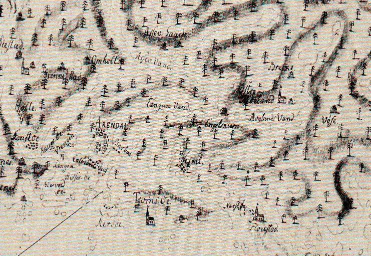 I 1723 var Narestø sentrum i Flosta. Det var en viktig havn, med mange handelshus og ikke minst kirke.