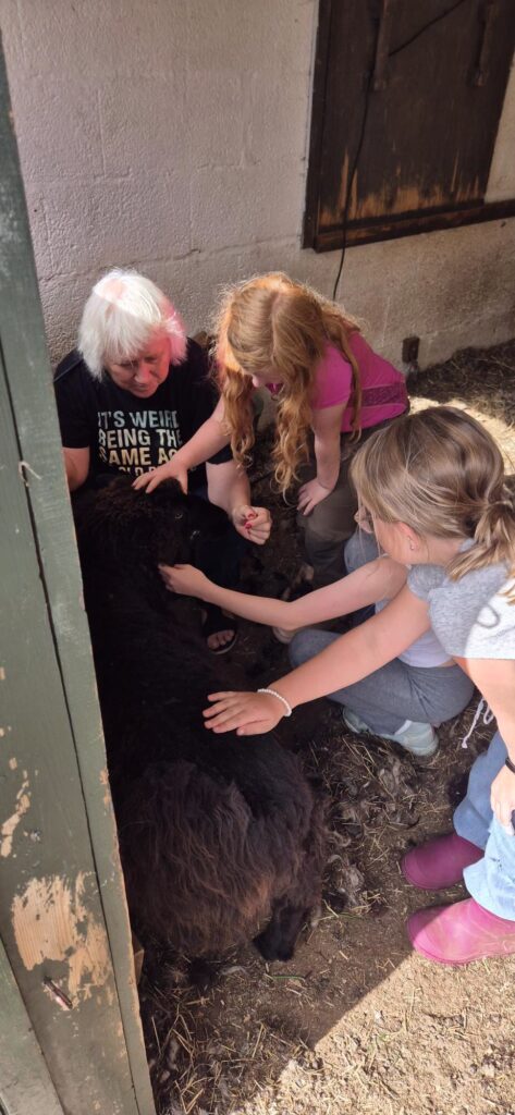 18- september hadde jeg besøk av 4 kl av Steinerskolen. Elevene lærer om primærnæringene og ønsket å se hvordan man klipper sau. Det var så hyggelig og fellen til «Lade» er nå blitt gjetertasker.